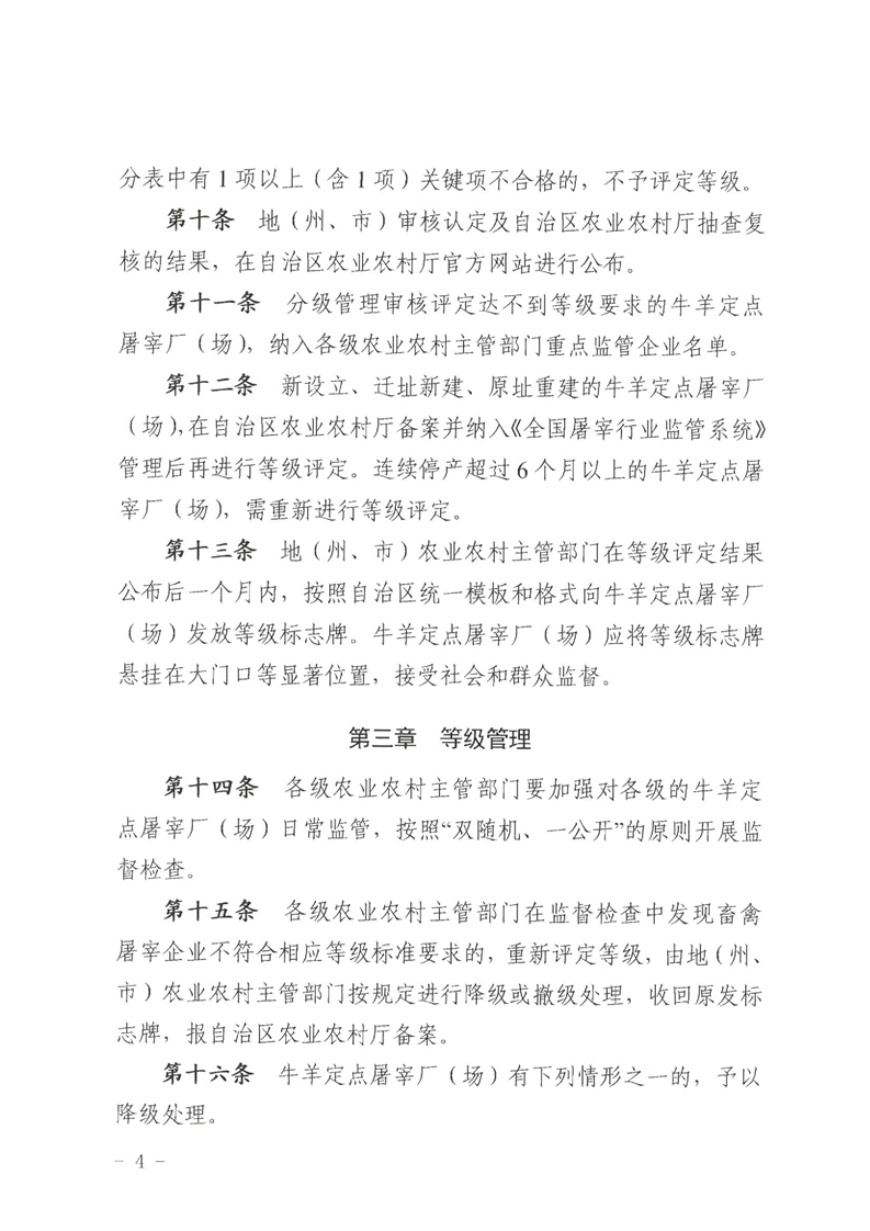 【本部门规范性文件】关于印发《新疆维吾尔自治区牛羊定点屠宰厂(场)分级管理办法(试行)》的通知